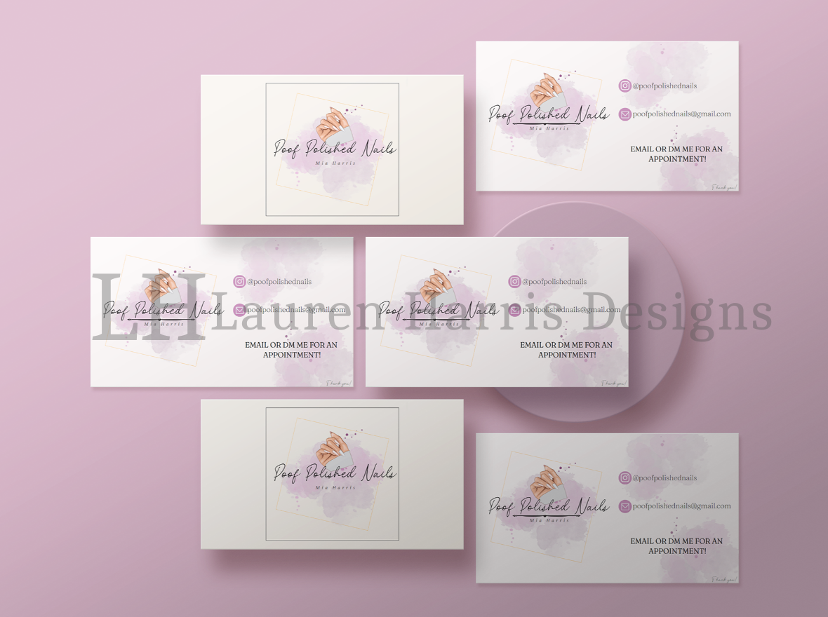 GRAPHIC DESIGN SERIES - POOF POLISHED NAILS BUSINESS CARDS & LOGO